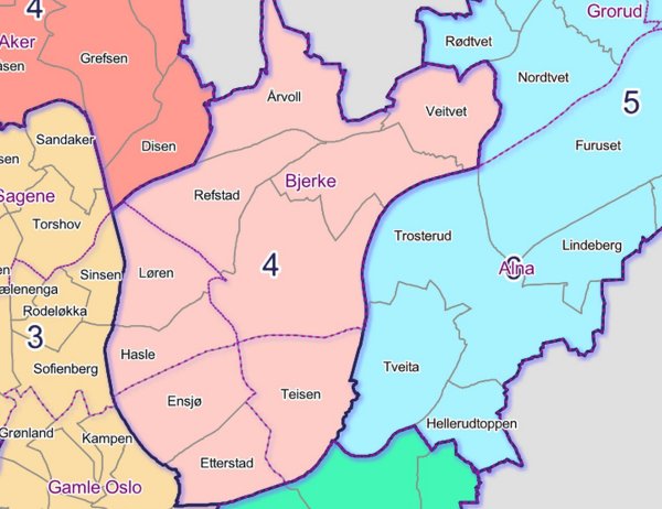 Med 6 (eller 7) bydeler blir det omtrent en sammenslåing av vår gamle bydel Helsfyr-Sinsen og Bjerke bydel (bortsett fra Sinsen, som går til Gamle Oslo).