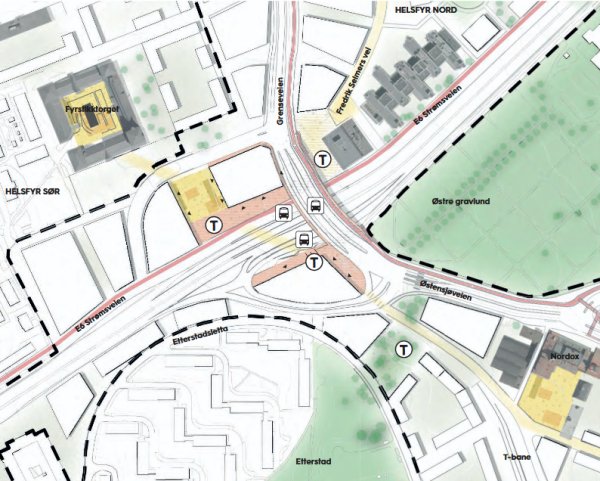 Det er tenkt en T-baneinngang inne på Etterstad. Forsåvidt ikke så rart, men vi syntes liksom det er noe som manglet på tegningen.